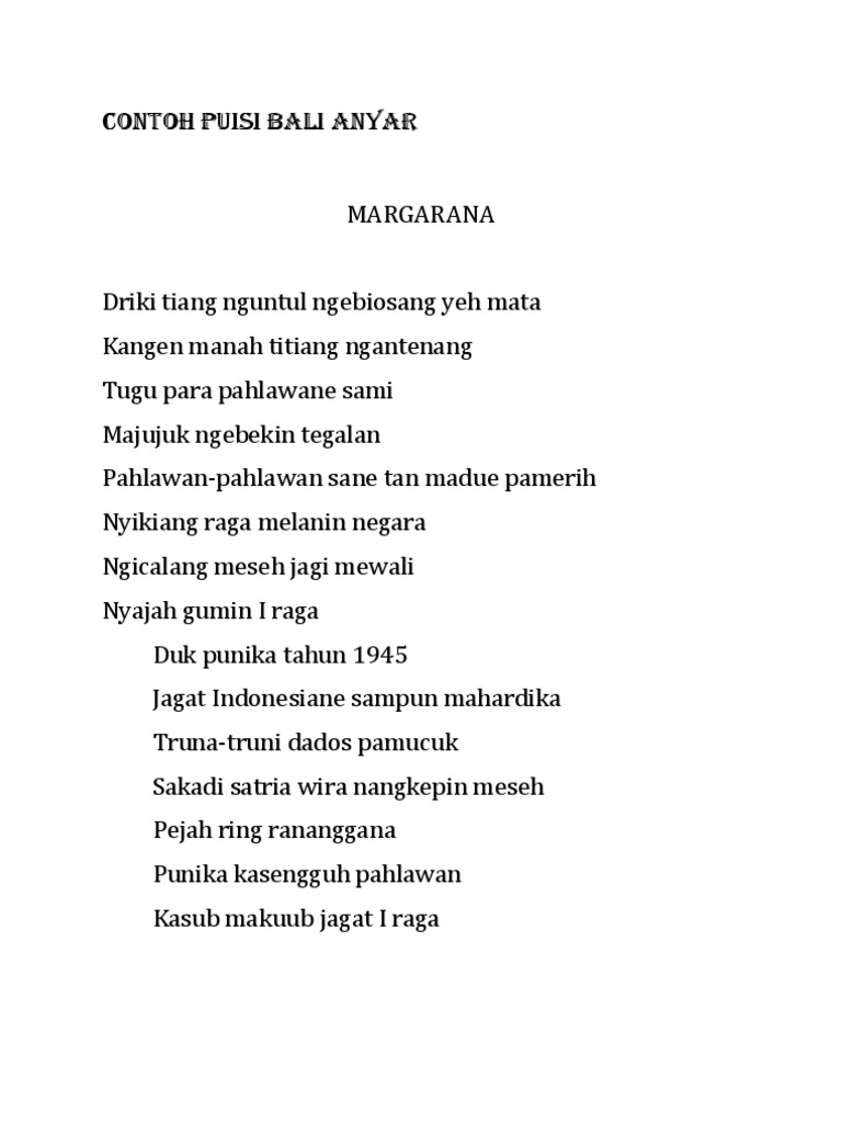 Puisi lama masih terikat dengan jumlah baris bait ataupun rima sajak. Contoh puisi bahasa bali dec 01 1 november 22 nov 30 1. Hari ini saya akan share beberapa contoh Pantun yang menggunakan bahasa Bali.
